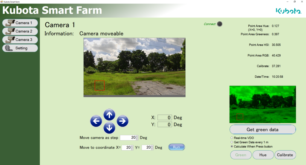 A movable camera system captures field images, allowing users to monitor crop conditions and analyze vegetation health through image-based green intensity measurements.