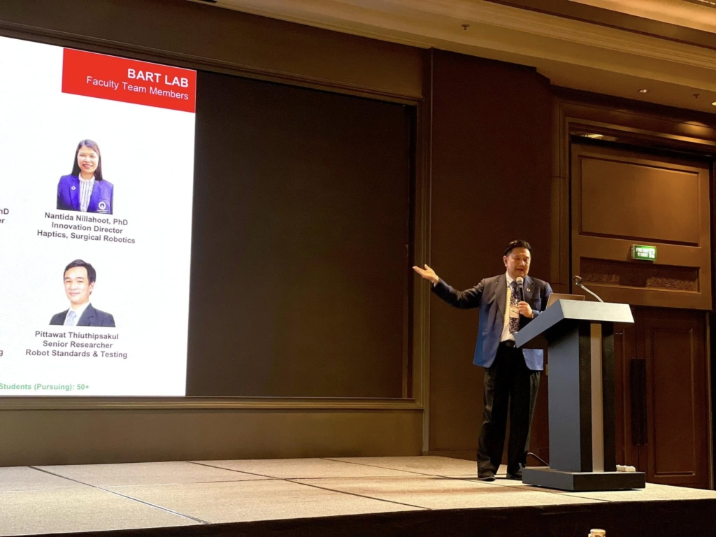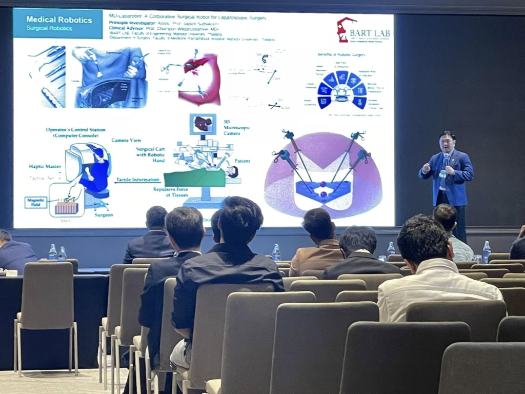 December 13, 2024 – Assoc. Prof. Dr. Jackrit Suthakorn, Director of the Center for Biomedical and Robotics Technology (BART LAB), was honored to serve as a Keynote Speaker at the 20th IEEE International Conference on Robotics and Biomimetics (IEEE ROBIO 2024), marking a historic milestone as the first Thai professor to be invited in the conference’s 20-year history.