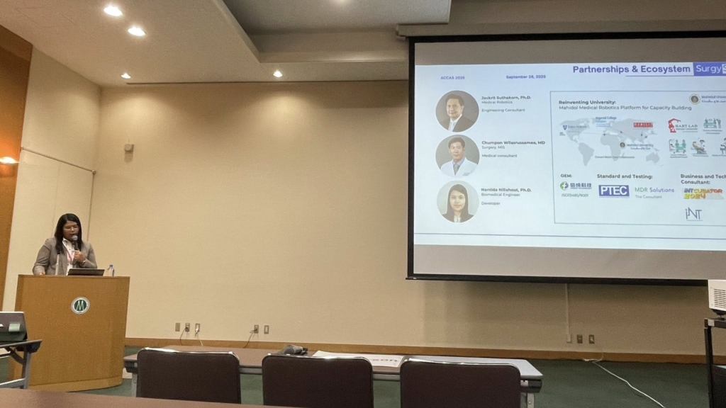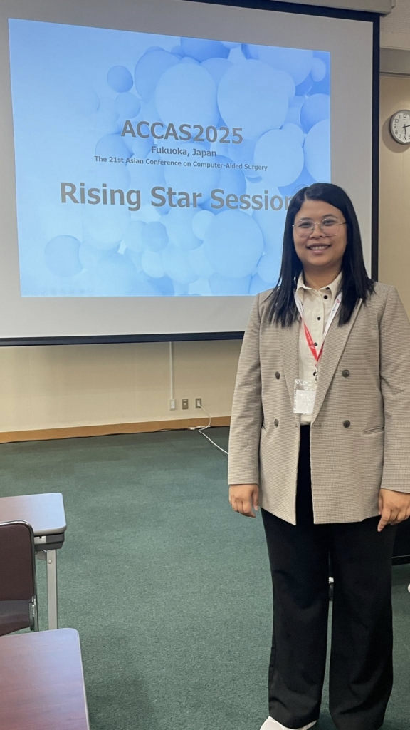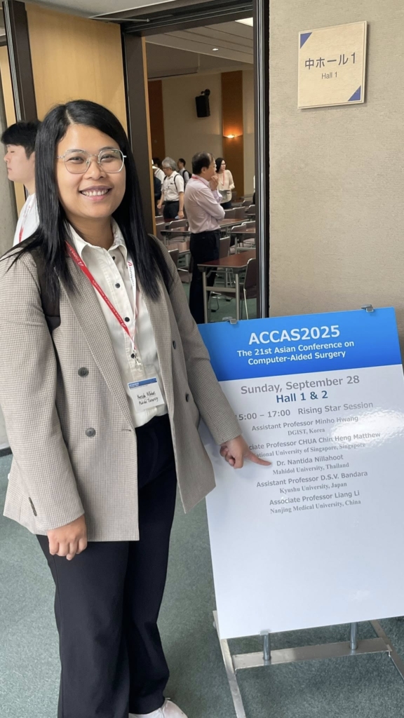 Dr. Nantida Nillahoot (Nui Nan), Innovation Director of BART LAB, was invited to deliver a talk in the prestigious “Rising Star Session.” Her presentation, “SurgySym – A Surgical Training Simulator from Research to Product,” highlighted BART LAB’s translational research journey from academic innovation to real-world surgical training applications. Two legendary pioneers in the field—Prof. Makoto Hashizume (Japan) and Prof. Dong-Soo Kwon (Korea)—attended the session, marking an inspiring milestone for Thai biomedical innovation.