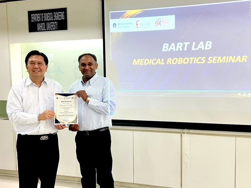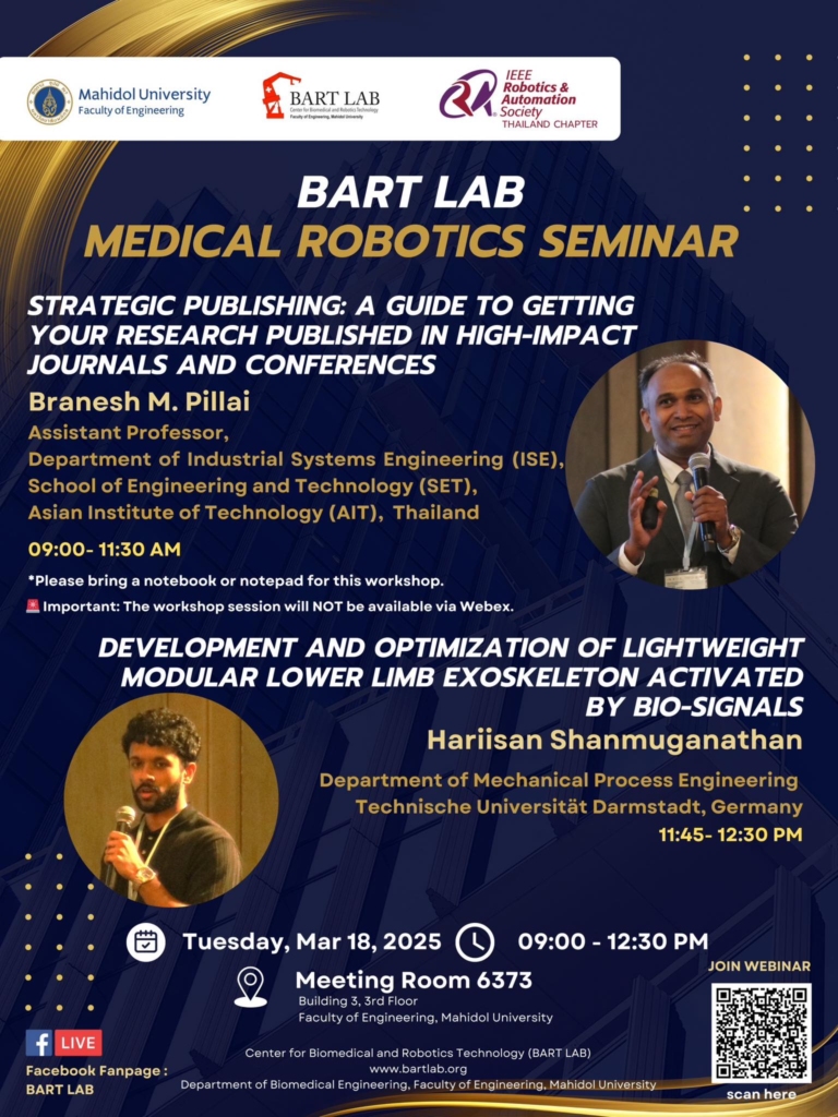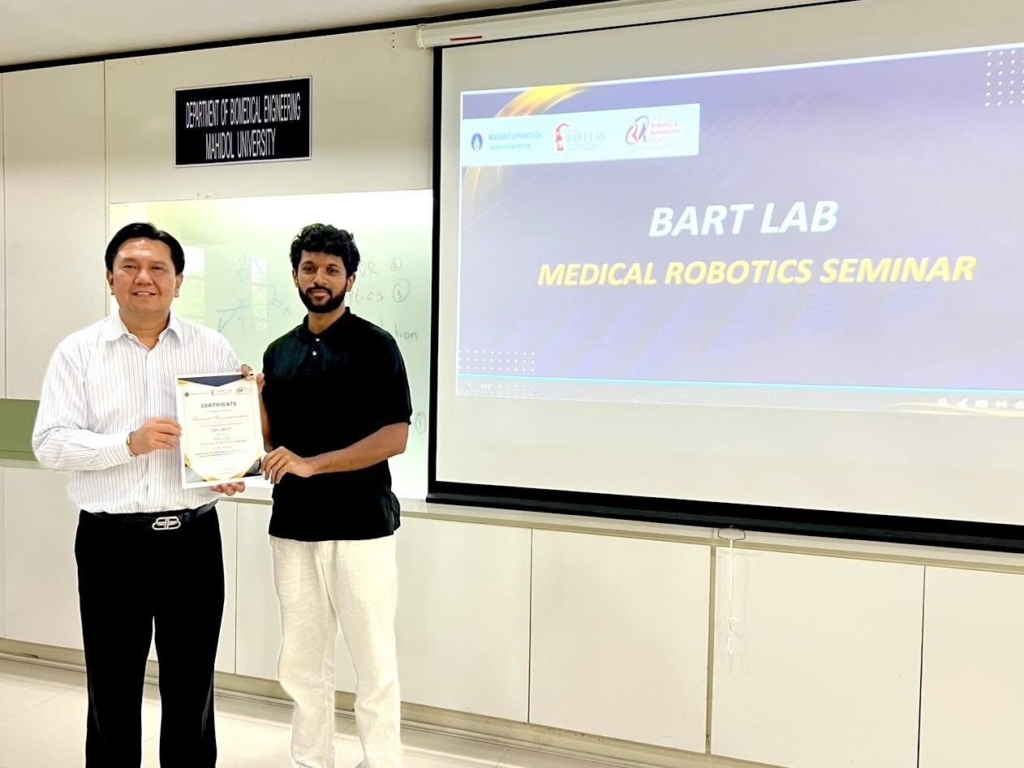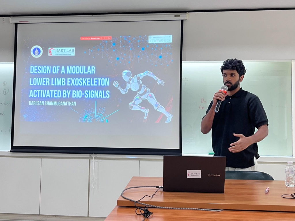 The session provided valuable strategies for academic writing, structuring impactful research papers, and navigating the peer-review process—essential for young researchers aiming to publish in top-tier journals. - Hariisan, an exchange student from Technical University of Darmstadt, Germany, delivered his final thesis presentation summarizing the research conducted during his time at BART LAB as part of his Master’s program. His work contributed to BART LAB’s international research scope in biomedical engineering and robotics.