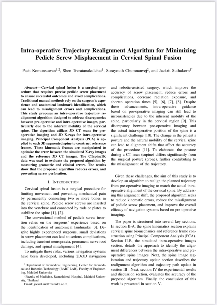 This recognition highlights the strength of the MD-MEng program, the impact of BART LAB’s interdisciplinary research, and the potential of young Thai researchers on the global stage in robotics and biomedical innovation.