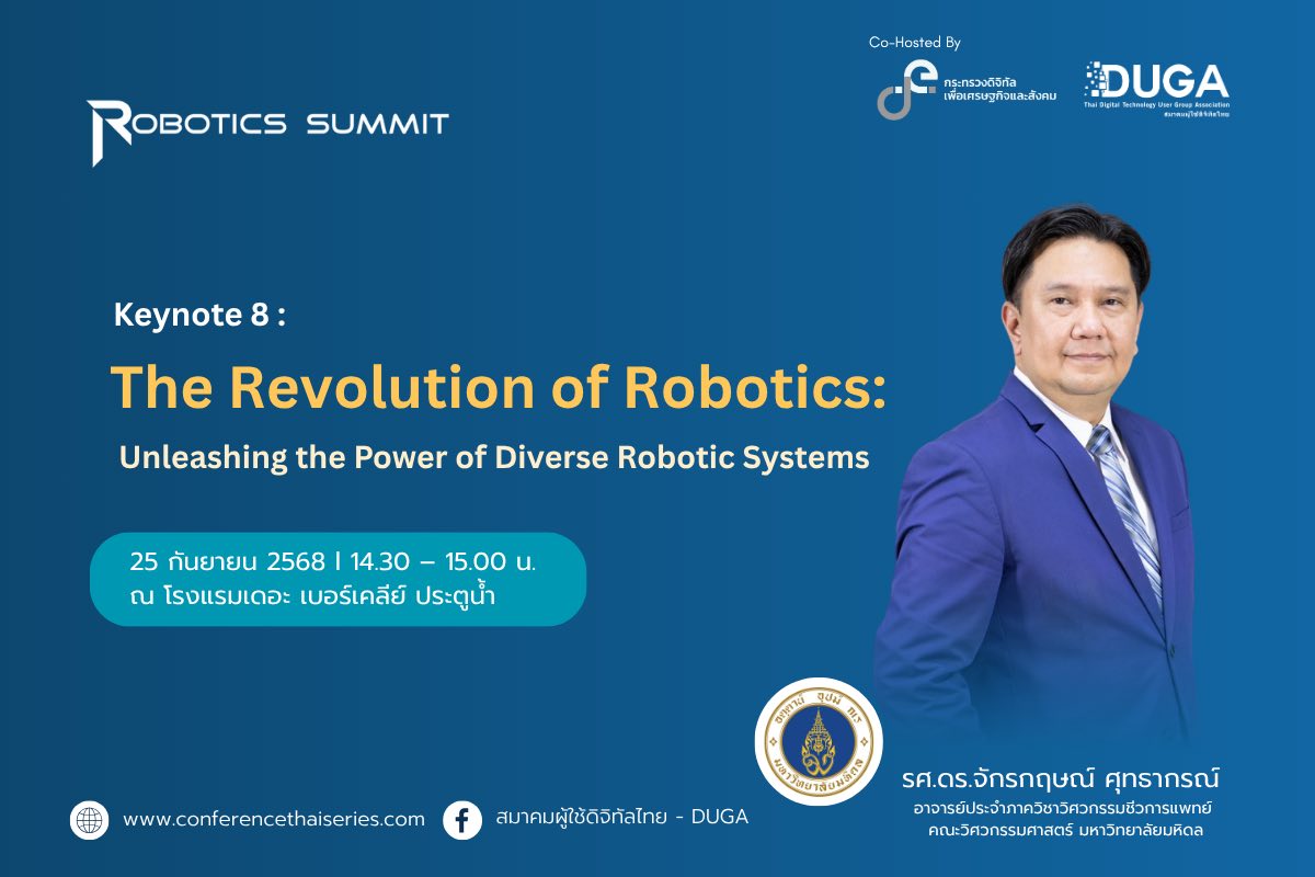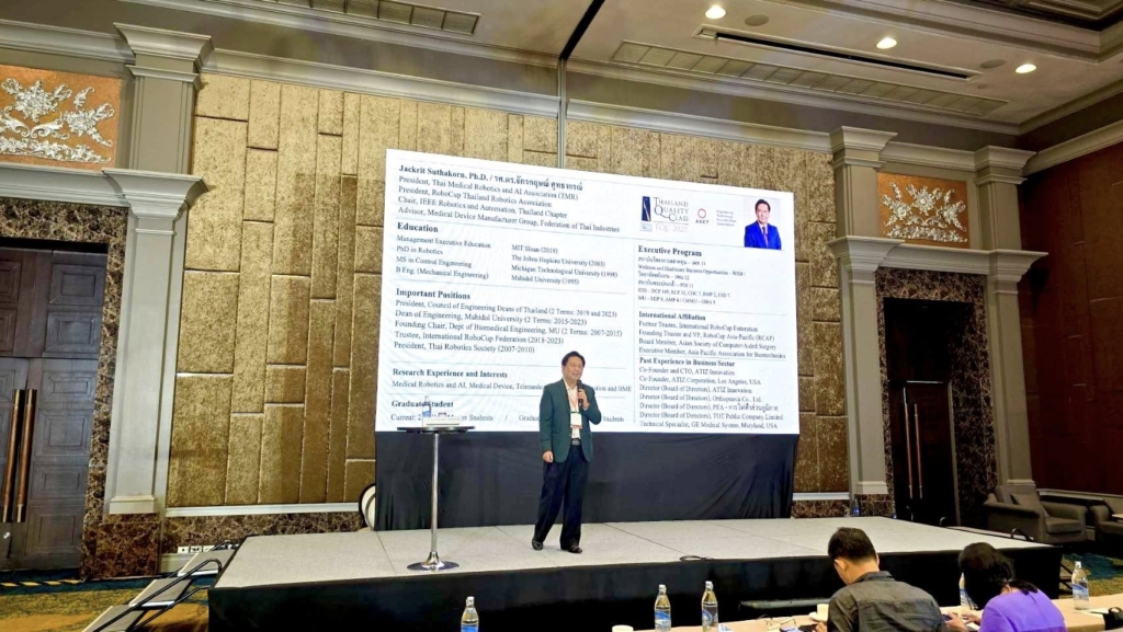 Assoc. Prof. Dr. Jackrit Suthakorn, Director of the Center for Biomedical and Robotics Technology (BART LAB) and faculty member of the Department of Biomedical Engineering, Mahidol University, was invited as a featured speaker at the Robotics Summit 2025, held in Bangkok.