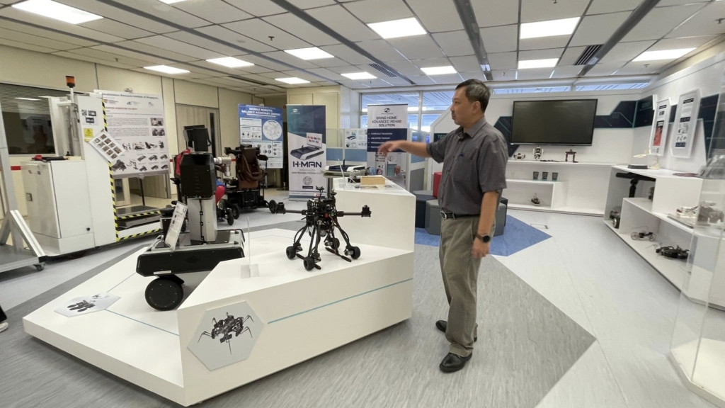 At NTU, the delegation was warmly welcomed by long-time collaborator Prof. Ang Wei Tech, Director of the Rehabilitation Robotics Lab. The team visited the Rehabilitation Gait Analysis Laboratory and Robotics Research Centre, which featured impressive projects beyond rehabilitation robotics, including insect-inspired rescue robots, magnetically controlled micro-robots for targeted drug delivery, and other cutting-edge innovations.