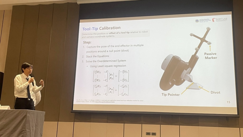 Among the standout projects was a BART LAB-led Capstone on Pedicle Screw Insertion Planning and Real-Time Spine Surgical Guiding Robot, advised by Assoc. Prof. Dr. Jackrit Suthakorn, with team members Mono, Oat, and Mind receiving praise for their excellent performance.