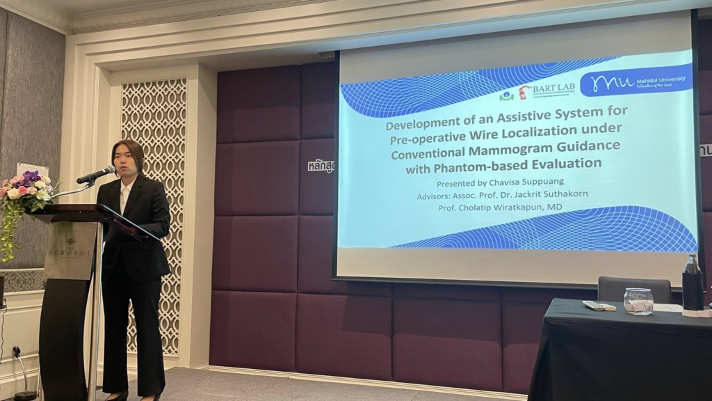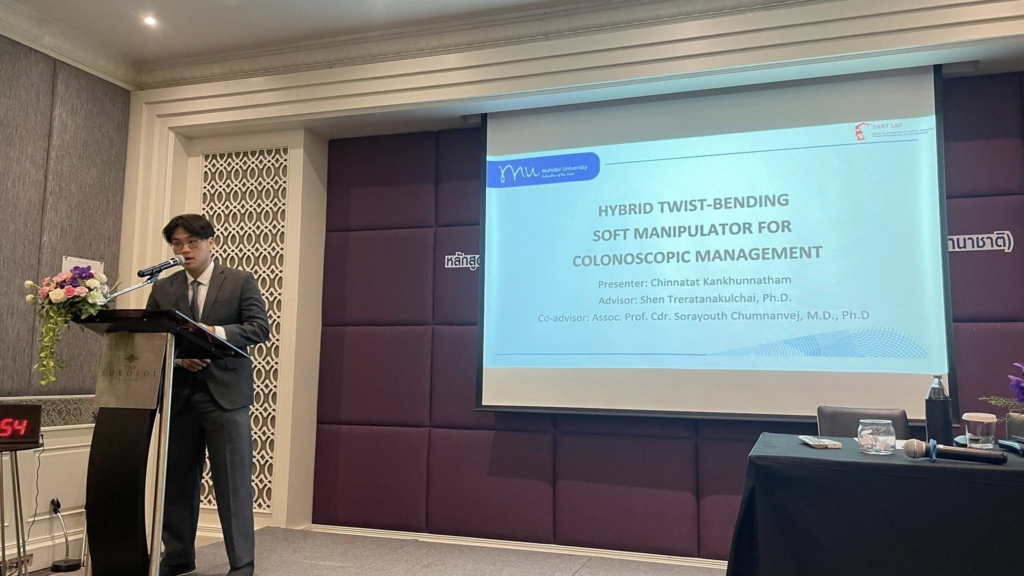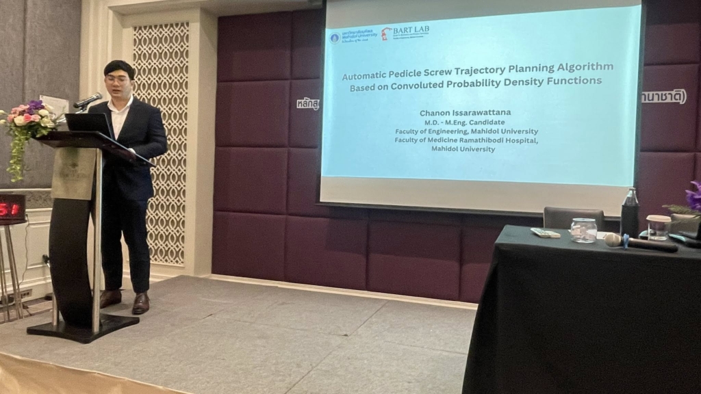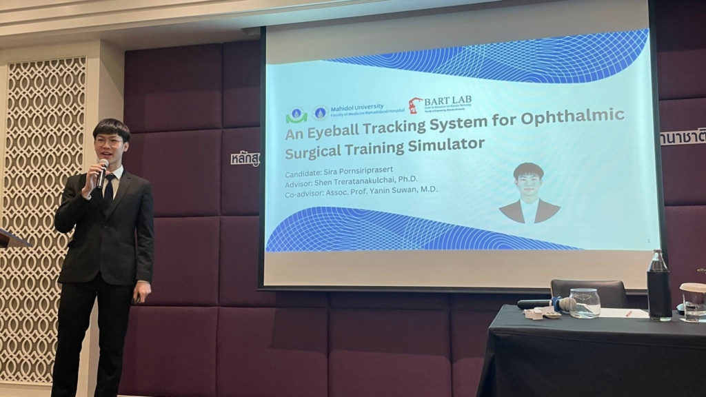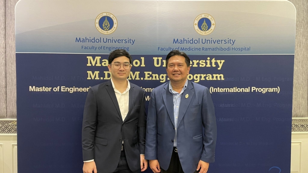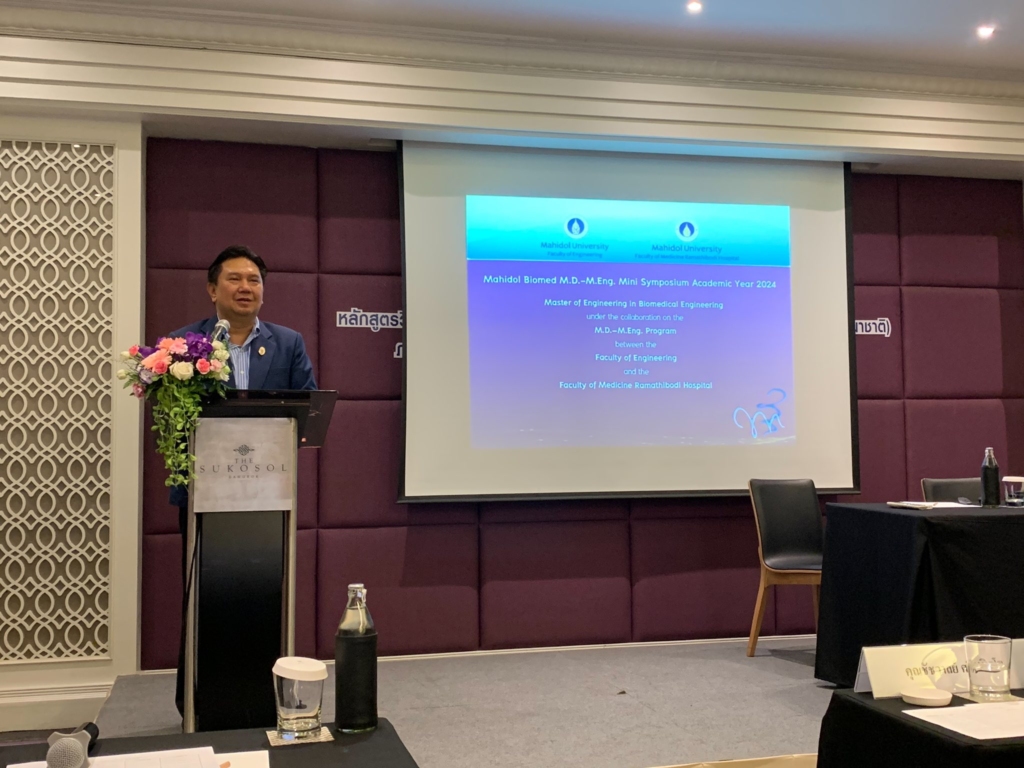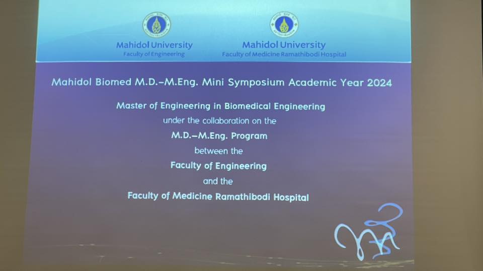 The M.D.–M.Eng. Mini Symposium was held at The Sukosol Hotel, Phayathai, to highlight research achievements of the second cohort of students in the Dual-Degree Program in Medicine and Biomedical Engineering. The program is a collaboration between the Department of Biomedical Engineering, Faculty of Engineering, and the Faculty of Medicine Ramathibodi Hospital, Mahidol University.