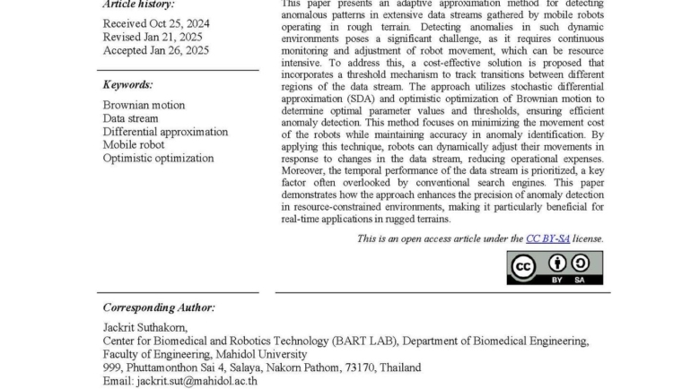 BART LAB published a new article on robot anomaly detection using stochastic differential methods and Brownian motion in IJRA, a SCOPUS-indexed journal.